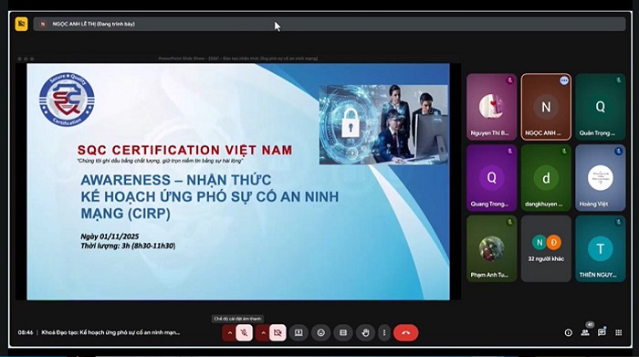 Những ngày đầu tháng 11 vừa qua, SQC Certification đã tổ chức thành công khóa đào tạo trực tuyến “Lập kế hoạch & Quản lý Ứng phó Sự cố An ninh Mạng – CIRP (Cybersecurity Incident Response Planning and Management)” với sự tham gia của hơn 50 học viên đến từ nhiều doanh nghiệp, tổ chức và đơn vị quản lý trên toàn quốc. Khóa học được tổ chức miễn phí nhằm lan tỏa kiến thức và nâng cao năng lực ứng phó sự cố an ninh mạng trong thời kỳ chuyển đổi số.